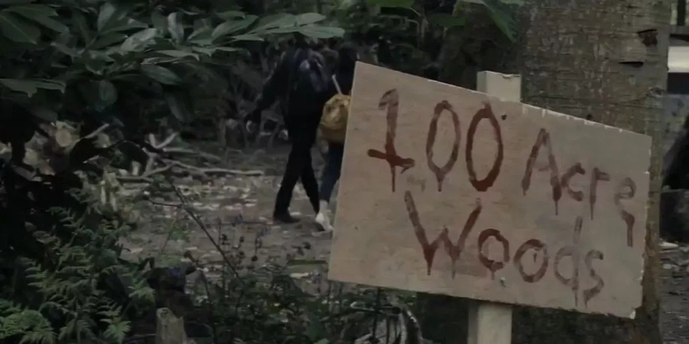 Incluso el Bosque de los Cien Acres es ahora un paisaje espeluznante y cubierto de maleza, en lugar del bosque caprichoso que todo el mundo recuerda. Esto crea un escenario sorprendentemente aterrador para la película. Desde este punto de vista, Pooh y Piglet son los guardianes inhumanos del bosque, que matan a cualquiera que se aleje demasiado.