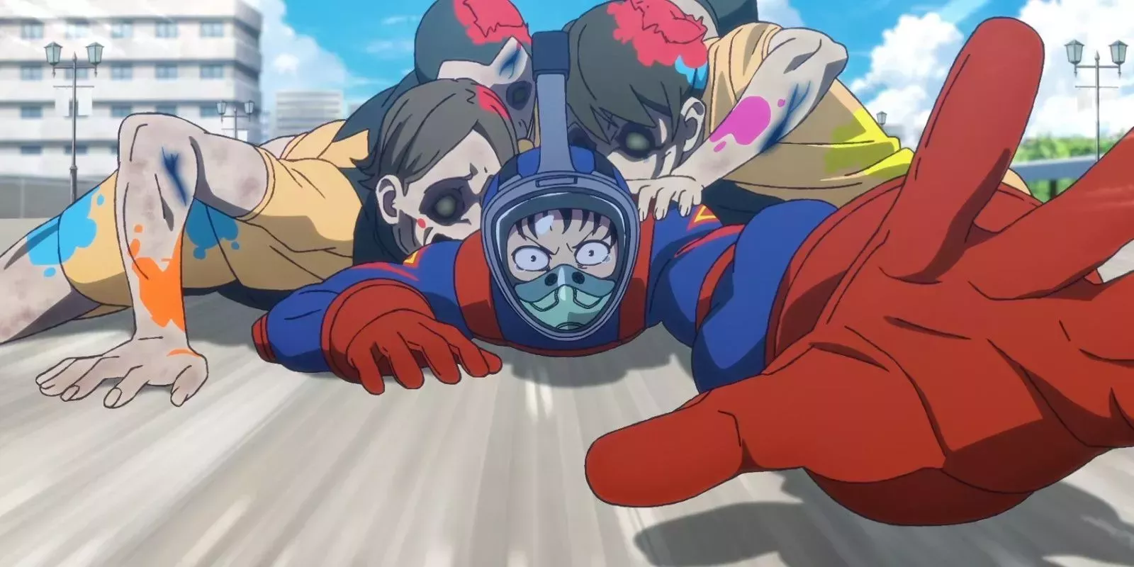Akira Tendo por fin empezó a ver los colores del mundo, gracias a que el brote zombi acabó con su vida laboral, y todas las manchas de sangre a su alrededor simbolizaban ese hecho. Esto significa que el anime de Zom 100 representaba toda la sangre como pintura multicolor, convirtiendo un aspecto repugnante del apocalipsis zombi en un vibrante telón de fondo de alegría.