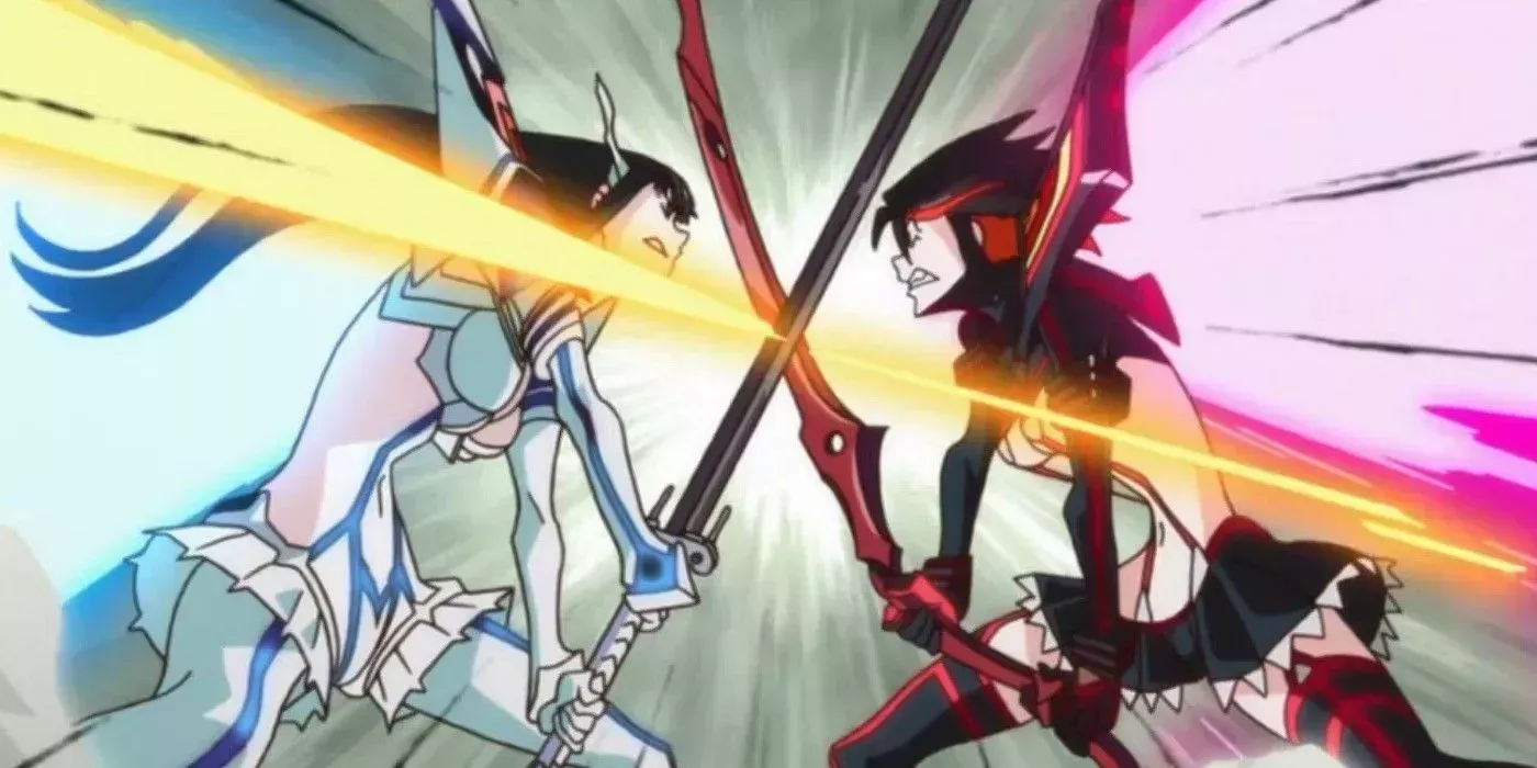 Studio Trigger no es conocido por su moderación. Es un estudio ruidoso, llamativo y exagerado que ha heredado el fervor experimental de Studio Gainax. Su primer gran anime lo demuestra. Kill la Kill tiene peleas de acción con poca ropa que resultan ridículas. Cada golpe que dan Satsuki y Ryuuko destruye el terreno cercano. Las peleas son largas pero no se sienten alargadas.