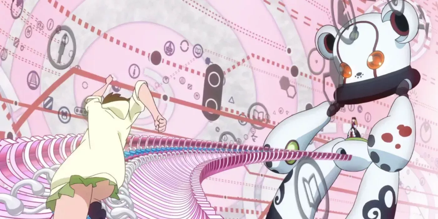 Dennou Coil es una joya oculta de la que hay que hablar más, especialmente dentro del género de ciencia ficción del anime. Se centra en la rápida integración de las redes sociales y el mundo digital. En la serie, se explora a través de la realidad aumentada (RA). Esto queda muy claro al mostrar muchos elementos de RA en 3DCG.