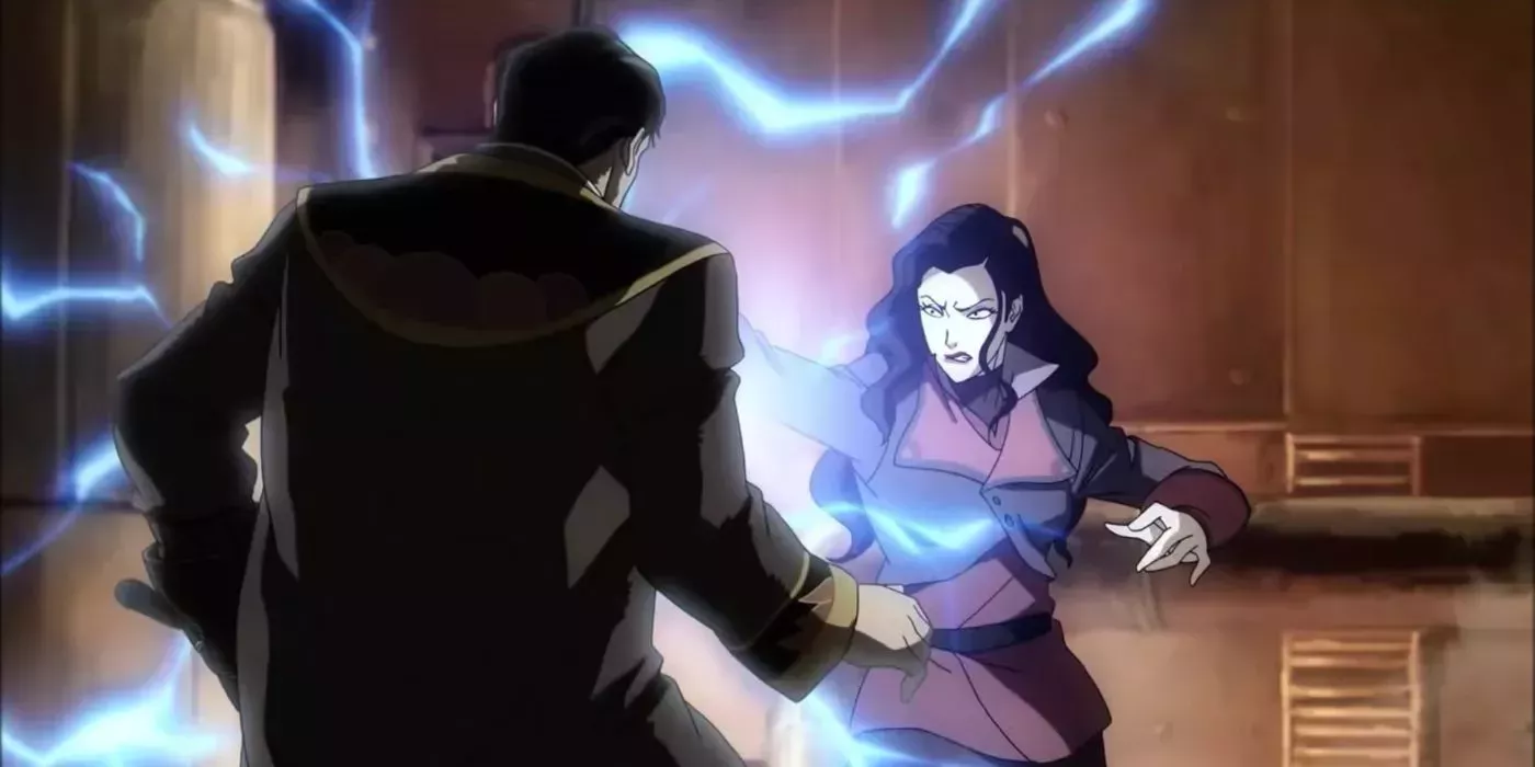 La velocidad y flexibilidad de Asami son más que competentes: esquiva sin esfuerzo los bloqueos de chi de Amon antes de incapacitarlos con su guante electrificado. Dicho esto, es poco probable que Asami gane un combate contra alguien como Korra, sobre todo si el Avatar quiere ganar en serio.