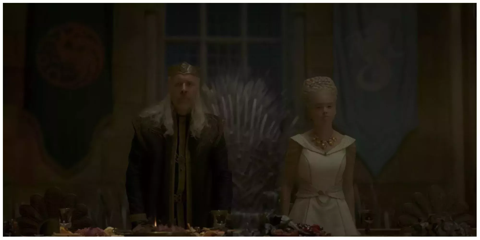 Rhaenyra y Leanor se casan momentos después. Mientras están en la solemne y ensangrentada sala y toman sus votos, Viserys se derrumba. El episodio 5 deja a los fans procesando el repentino e impactante giro de los acontecimientos que, aunque no fue tan sangriento, puede recordar a la "Boda Roja" de Juego de Tronos .