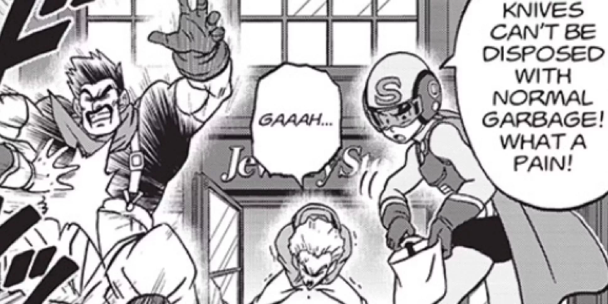Goten no sólo sabe cómo deshacerse de la basura, sino que también conoce los matices de la forma adecuada de deshacerse de tipos únicos de basura, como los cuchillos. En lugar de simplemente tirar los cuchillos después de desarmar a sus oponentes, Goten se preocupa de tomar las precauciones adecuadas al deshacerse de los cuchillos para que nadie salga herido.
