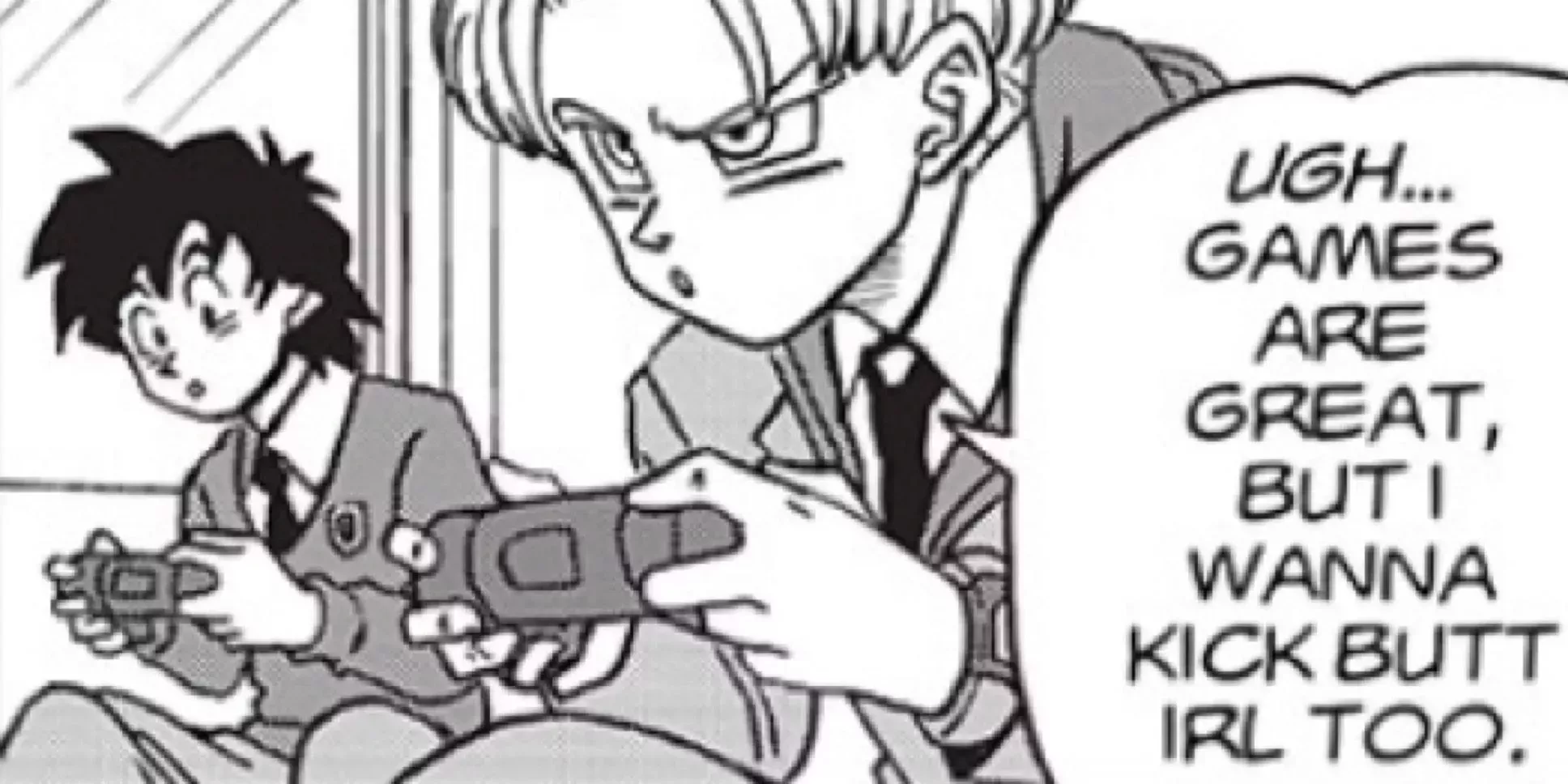 Dado que Goten y Trunks son niños como cualquier otro de hoy en dÃa, disfrutan de los mismos pasatiempos que los demás niños, y los videojuegos son una gran parte de ellos. Aunque tanto a Trunks como a Goten parece que les gusta jugar, Trunks parece más del tipo ambicioso y amante de la naturaleza, mientras que Goten es más estudioso y empollón.