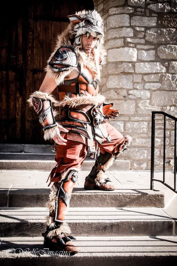 El tocado con la cara de Arcanine encapsula la ferocidad de los Pokémon, y con la adición de la piel en varias partes del cosplay ayuda a mantenerlo realista y profesional. Las varias capas de tela marrón debajo de la armadura, y el cinturón impresionante que se asienta en su abdomen lo hace especial y único por todas las razones correctas.