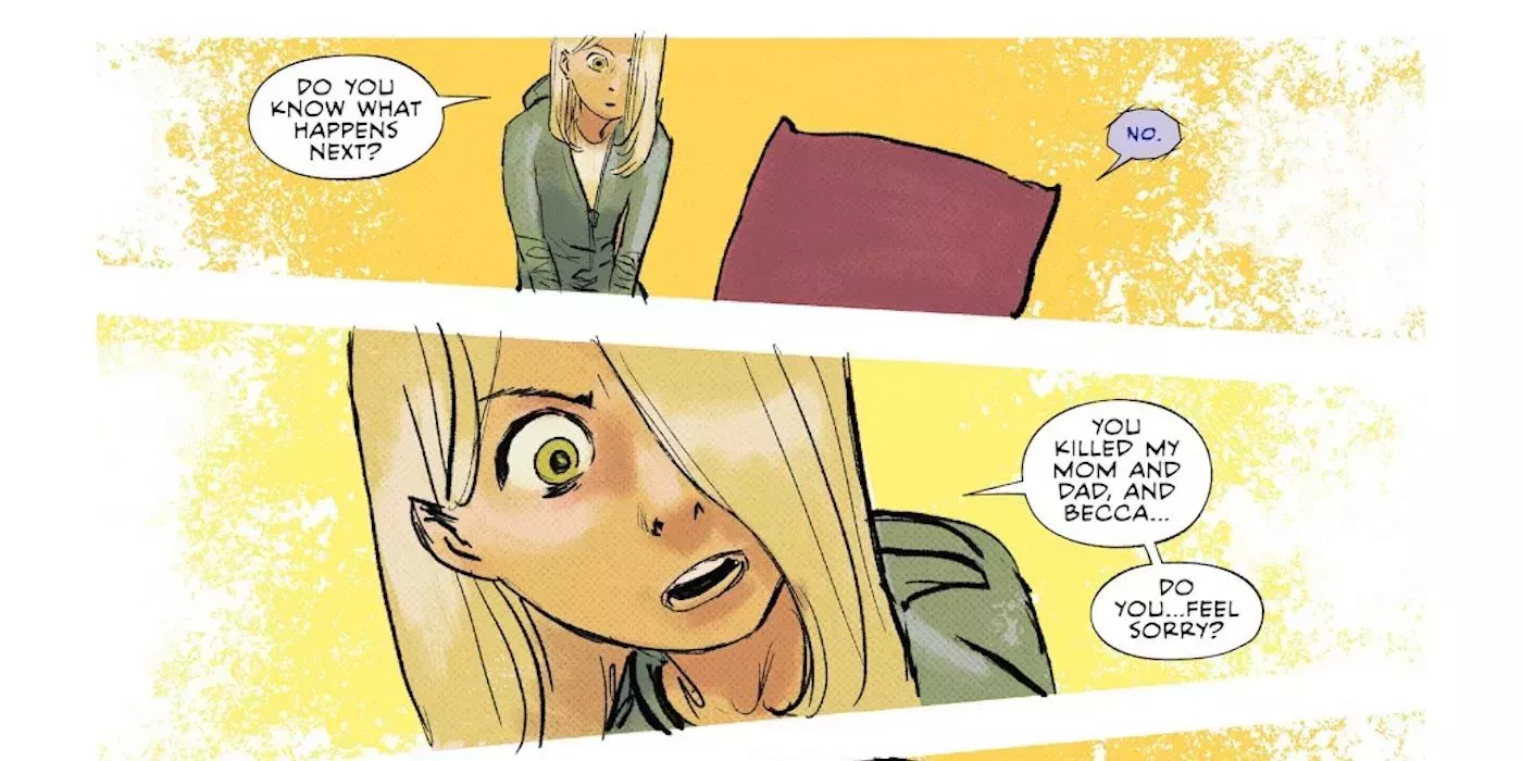 Aunque el libro no aclaraba cómo Jessica había muerto años antes, mostraba a Gary como rehén en el presente. Cutter lo estaba castigando por ayudar a Erica en misiones como esta en Nuevo Mexico. Lo degolló para enviar un mensaje a Erica y a todas las Casas. Una vez más, Tynion demostró lo malvada e implacable que puede llegar a ser la humanidad.