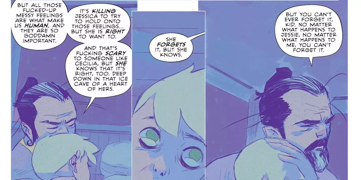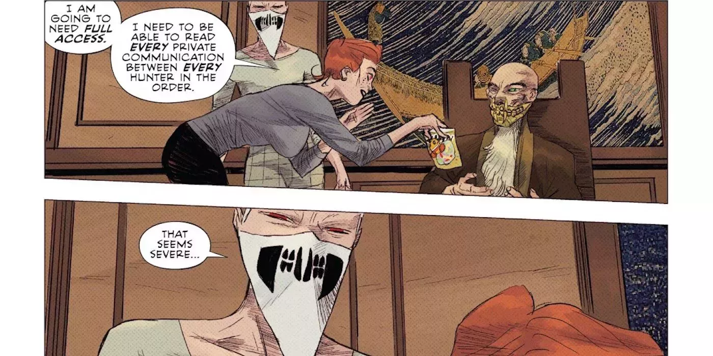 Algo está matando a los niños brilla por sus diálogos minimalistas. Sin embargo, cuando la gente se pone parlanchina, la historia adquiere muchas capas, sobre todo en lo que respecta al pasado de la Orden. En este capítulo, el Dragón y Cecilia tratan el concepto de insubordinación.