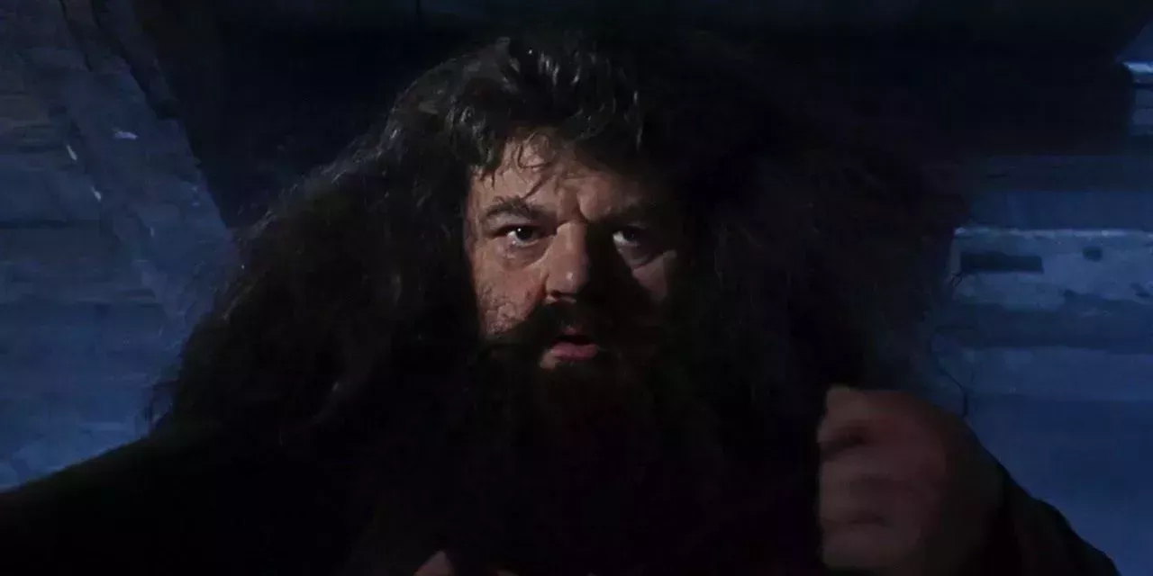 En una de las entradas de personajes más icónicas de toda la franquicia, Hagrid se encuentra con un Harry de once años en La piedra filosofal. Los Dursley han viajado a una cabaña remota, con la esperanza de escapar de las cartas de Hogwarts de Harry, pero Hagrid no tiene problemas para encontrarlos.
