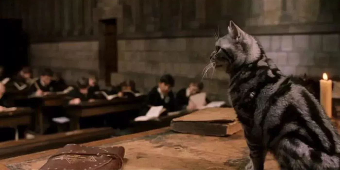 Una de las escenas más emblemáticas de McGonagall aparece en La piedra filosofal. Harry y Ron llegan tarde a la clase de transfiguración, pero creen que se han salido con la suya, ya que en la mesa de McGonagall sólo se sienta un gato. Sin embargo, el gato se transforma rápidamente y McGonagall se materializa ante sus ojos. Esto confirma su condición de animago y provoca una reacción icónica de Ron.