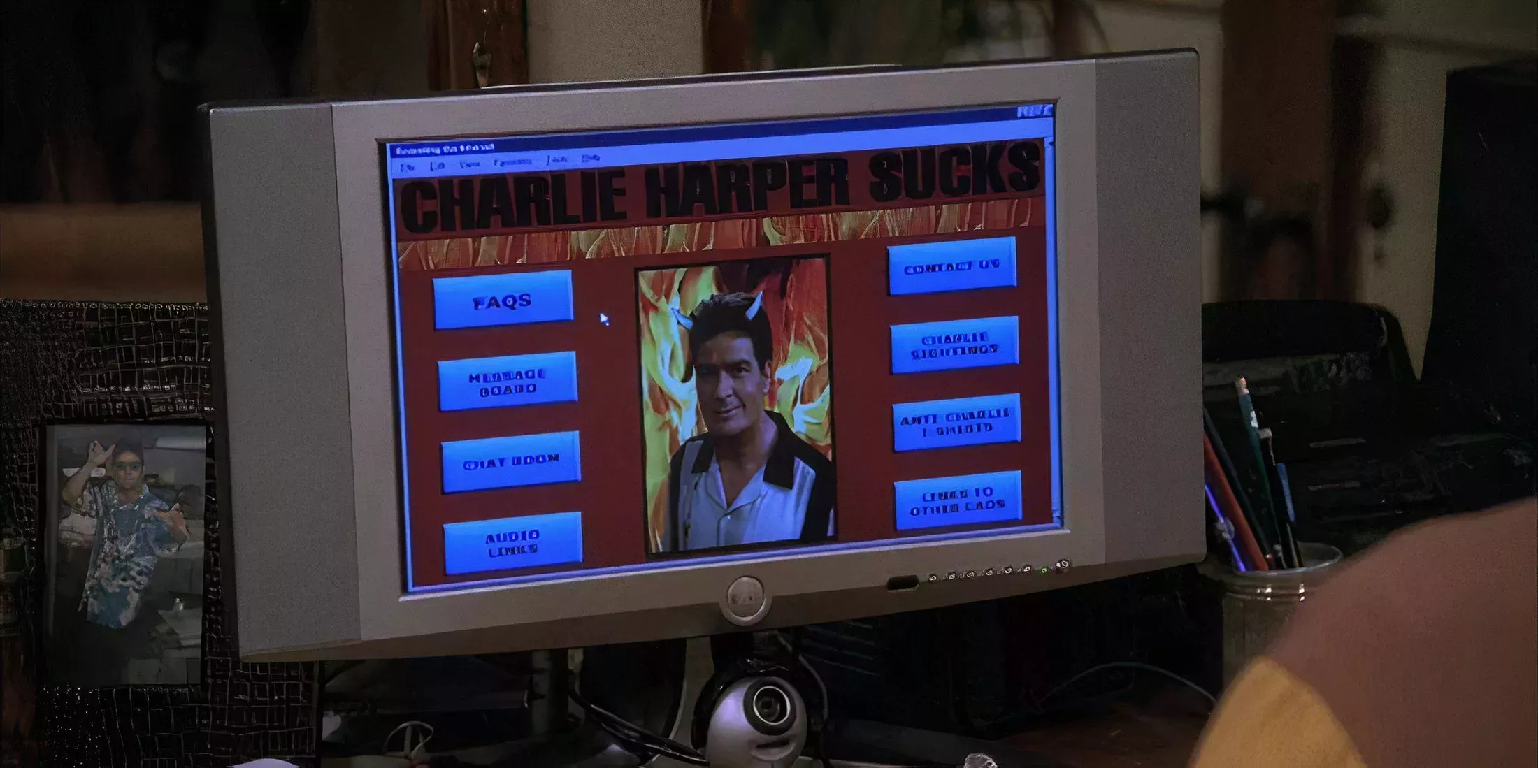 En el episodio 11 de la segunda temporada de Dos hombres y medio , Charlie tiene que enfrentarse a la mala reputación que se ha ganado gracias a una misteriosa página web que difunde verdades sobre él. Charlie se disculpa con todas las mujeres con las que ha salido, alienándolas una vez más con sus maneras de playboy.