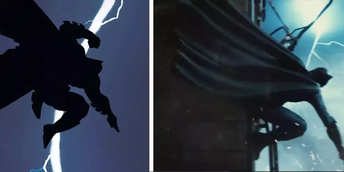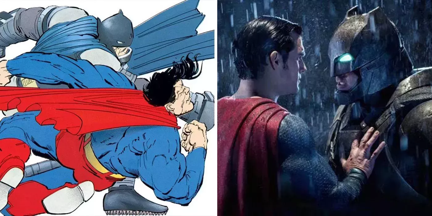 Toda la premisa es bastante similar al final de The Dark Knight Returns, donde un Batman blindado también luchaba contra Superman. Incluso algunos diálogos están tomados del libro. El mayor guiño es cuando Batman intenta patear a Superman, aunque sus poderes revividos le permiten lanzar al Cruzado con Capa. Es una clara recreación de un panel del libro, aunque sin patear a Superman.