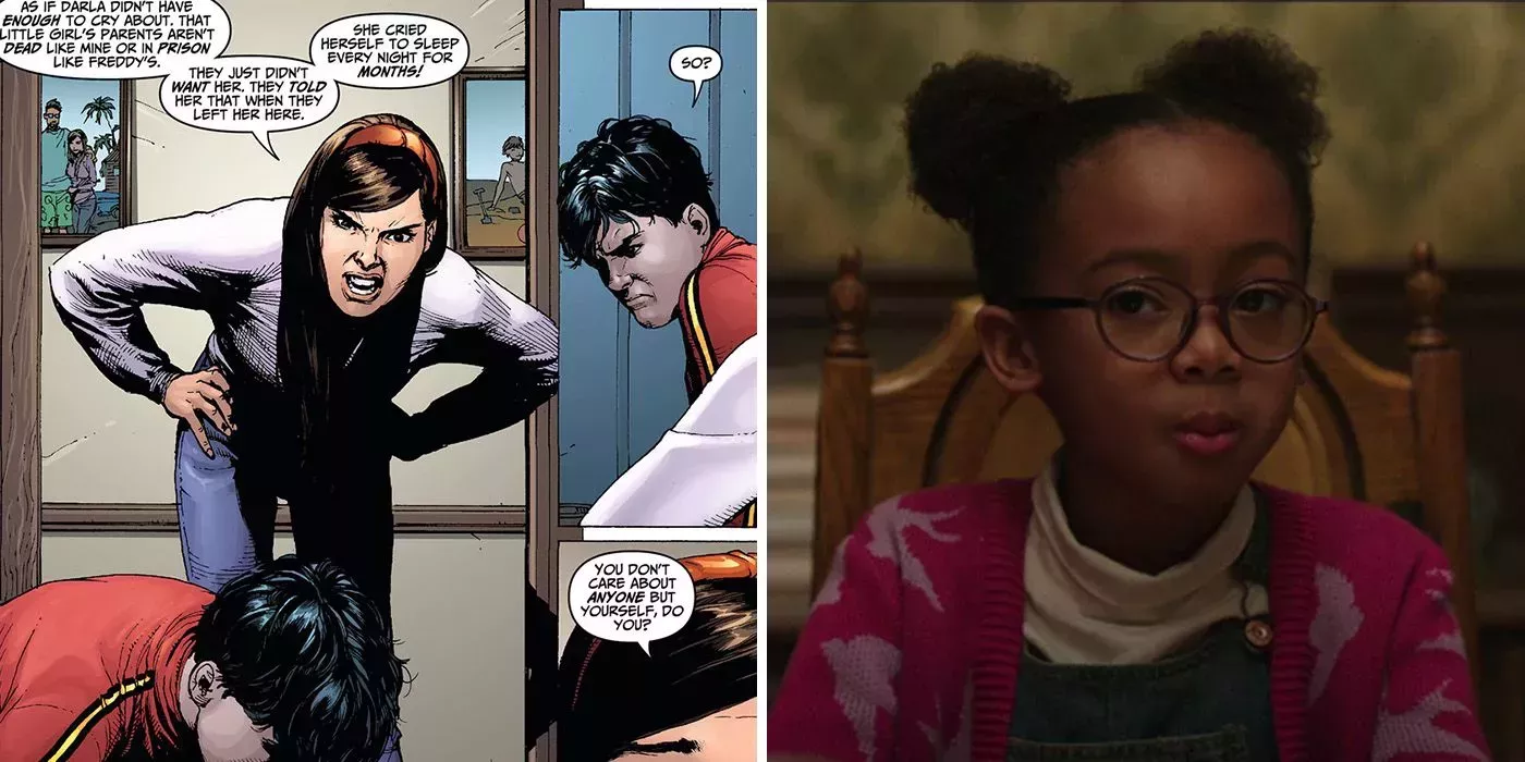 En una escena de Shazam, Billy Batson va al colegio con su familia de acogida por primera vez. Darla está emocionada por estar con su nuevo hermano, pero Billy no tarda en recordarle que en realidad no son hermanos. Esta noticia y su tono entristecen a la joven, por lo que Billy se disculpa por haberla hecho llorar.
