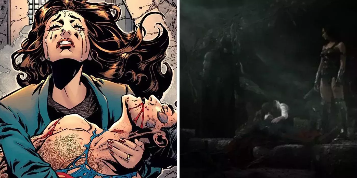 La imagen recuerda tanto a "La Pietà" como a una escena similar de " La muerte de Superman". En esa historia, Doomsday y Superman se mataban mutuamente, así que tenía sentido. Sin embargo, el colorido y el tono de la película hacen que el sacrificio sea aún más trágico.