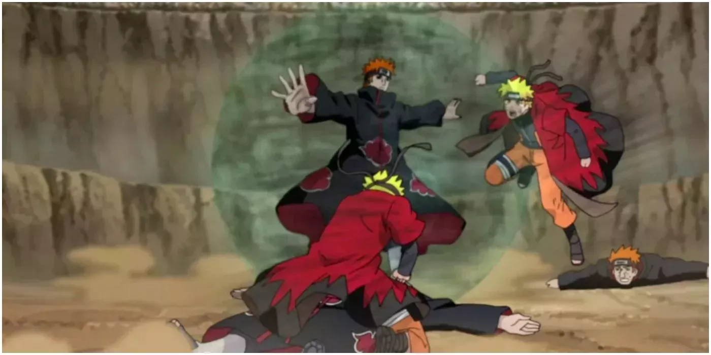 Su técnica más potente, el Empuje Todopoderoso, procede de su Senda Deva. Al crear fuerzas de atracción y repulsión, el usuario podía mantener a raya a los enemigos mientras utilizaba fuerzas de atracción para atraer a los enemigos indefensos. El Empuje Todopoderoso era lo suficientemente fuerte como para convertir los clavos domésticos en proyectiles de alta presión y destruir Konohagakure en un único y decisivo ataque.