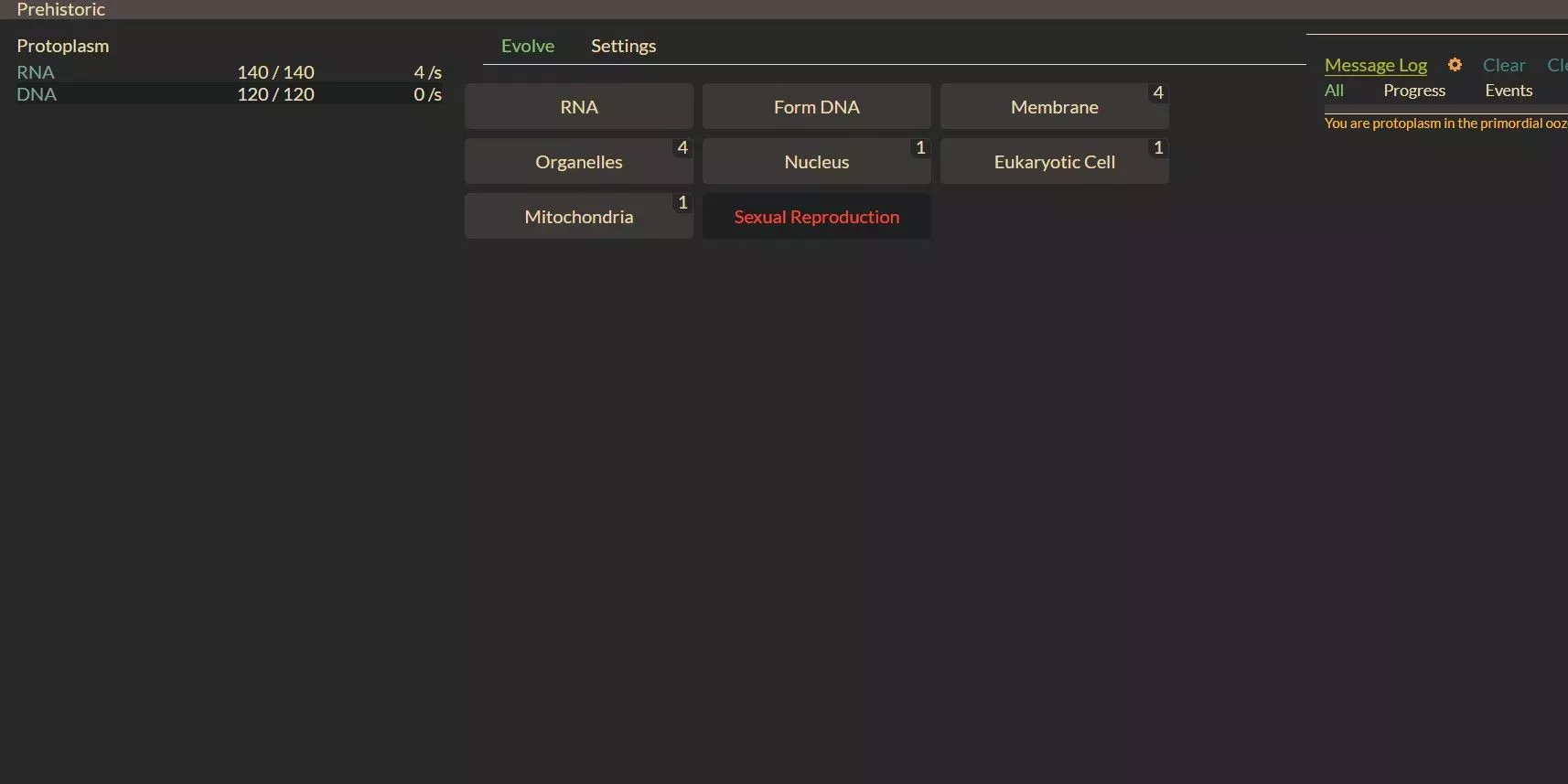 Evolve Idle es un juego gradual en el que los jugadores hacen evolucionar una especie desde la nada hasta algo sensible, antes de construir una poderosa civilización y, finalmente, alcanzar y colonizar el espacio. Al principio, los jugadores sólo tienen acceso a ADN y ARN, así como a construcciones que aumentan la cantidad de cosas que los jugadores pueden contener a la vez.