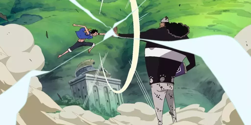 Gracias a la fruta Paw-Paw de Bartholomew Kuma, Monkey D. Luffy se ve obligado a ver cómo cada miembro de su tripulación es enviado a un lugar aleatorio del mundo, lo que le deja angustiado y cuestionándose su determinación. La secuencia marca un notable aumento de la calidad de la animación de One Piece, por lo que es una elección fácil como uno de los pocos momentos que el anime hizo mejor que su material original antes del salto temporal.