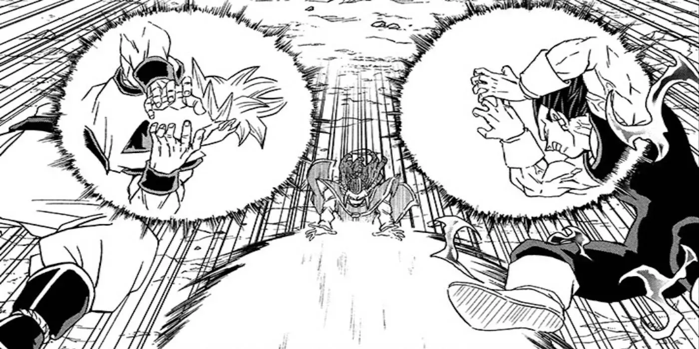 La Saga del Superhéroe de Dragon Ball Super se estrenó como largometraje, pero su adaptación al manga amplía con éxito el material. Hay un epílogo conmovedor para el arco argumental que se ha vuelto aún más conmovedor en retrospectiva como el último material de Dragon Ball en el que trabajó Akira Toriyama antes de su fallecimiento. Gohan se dirige al planeta de Beerus y Gohan Bestia y Goku Ultra Instinto se enfrentan en una prueba de fuerza amistosa. El enfrentamiento de Gohan y Goku comienza técnicamente en el capítulo 102 de Dragon Ball Super , "Son Goku contra Son Gohan", pero alcanza el ápice de su potencial en el capítulo siguiente, "Un legado hacia el futuro".