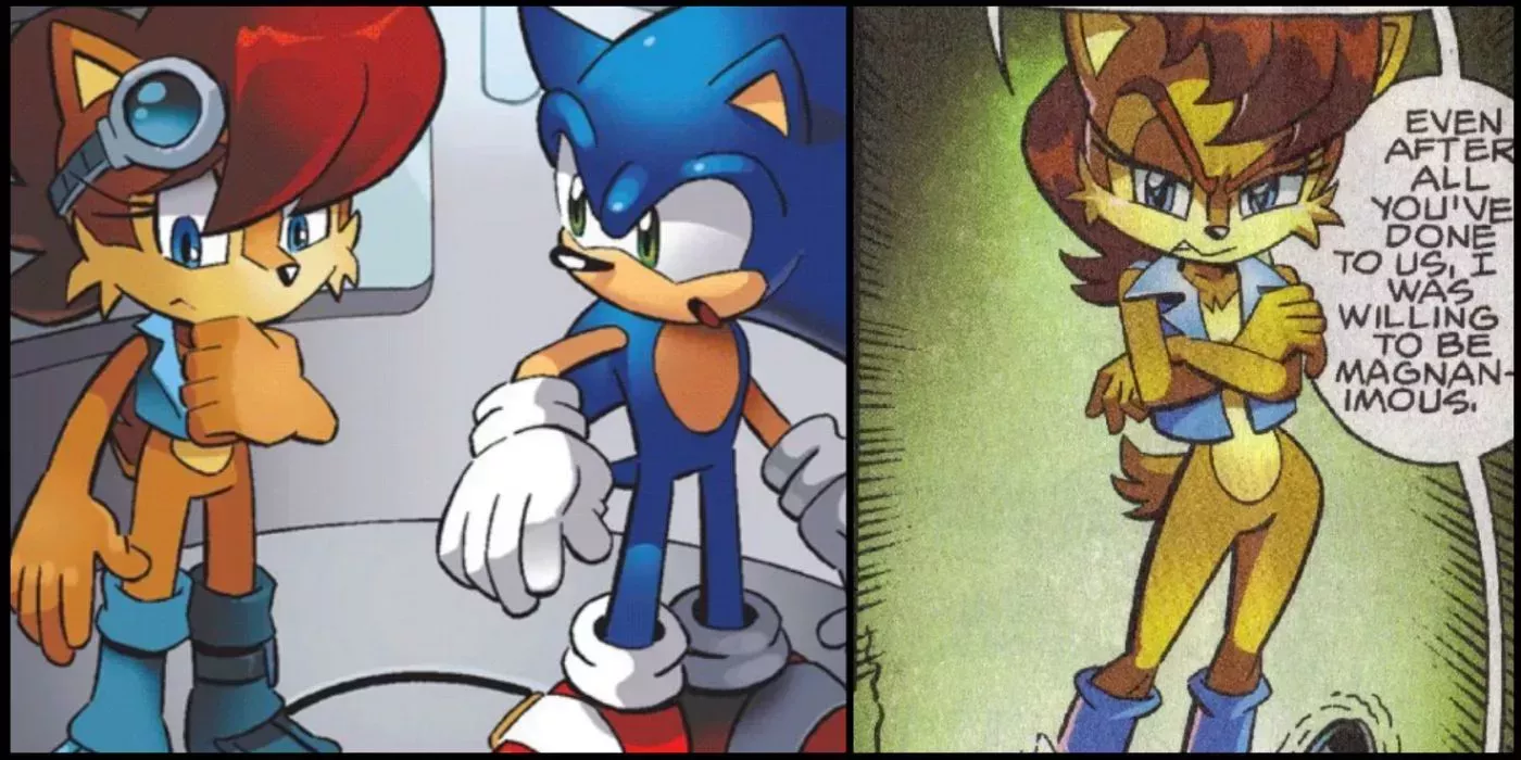 Sally Acorn es una líder fuerte con una mente aguda y una actitud testaruda. Fue la líder de los Combatientes de la Libertad, hija de la Corona Real e interés amoroso de Sonic durante la mayor parte de los Archie Comics.