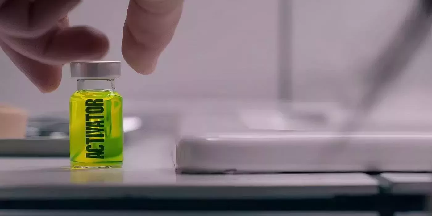 El activador se parece al proceso de tomar drogas intravenosas como la heroína. Evocando de repente Réquiem por un sueño, la escena de Elisabeth tomando el activador en su cuarto de baño grita "adicción". La actuación de Demi Moore es impresionante, con la impulsiva toma de decisiones de Elisabeth a juego con la mirada vacía de sus ojos en el espejo. Está automedicando el dolor de su odio a sí misma, como un drogadicto. El sentimiento que persigue Elisabeth es la validación de su autoestima. De este modo, la película señala indirectamente que los resultados extremos, como rostros y cuerpos chapuceros, proceden de la adicción a alcanzar la belleza.