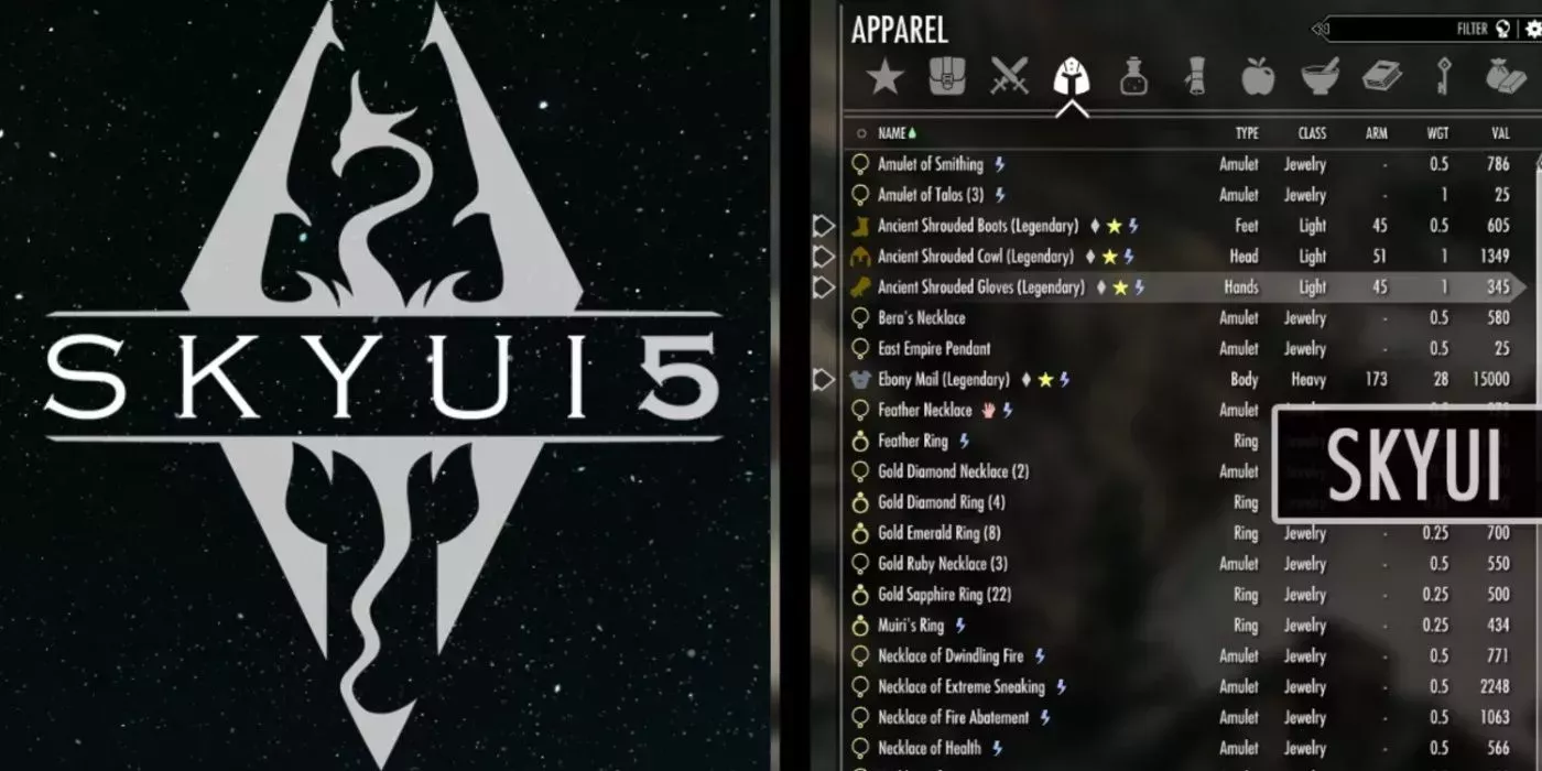 Afortunadamente, SkyUI - creado por el equipo SkyUI - proporciona una solución alternativa racionalizada, especialmente para aquellos que juegan con un ratón y un teclado. SkyUI ha revisado por completo la interfaz de usuario del juego para hacerla mucho más organizada, agradable a la vista y con más información sobre los objetos, armas, armaduras y habilidades del jugador en su inventario. Este mod es sin duda el complemento de interfaz de usuario más esencial para Skyrim.