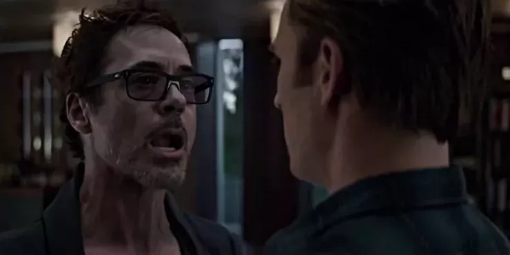A continuación, acusa a Steve de ser un mentiroso. Esta última adición es una inserción propia de Downey y una particularmente inspirada. La única palabra, pronunciada con la voz airada de Tony, encierra una inmensa cantidad de angustia y furia. Señala claramente que Tony no ha olvidado los acontecimientos de Civil War, y que la ruptura entre los personajes sigue ahí.