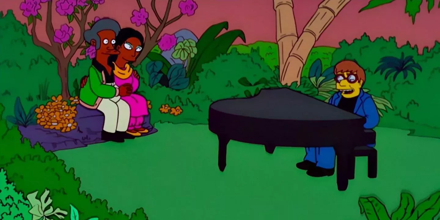 Después de 10 años en antena, Sir Elton John aparece como invitado en Los Simpson en el episodio de la 10ª temporada Estoy con Cupido. En el período previo al Día de San Valentín, Apu se pone en plan romántico y sorprende a Manjula con varios regalos. Al organizar un mensaje especial con un escritor aéreo, Apu se topa con Sir Elton John en el aeropuerto de Springfield.