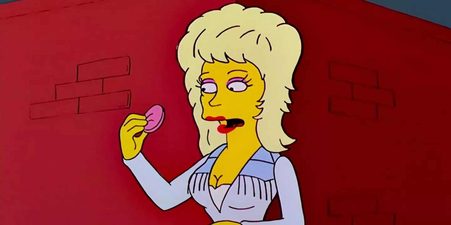 La cantante estadounidense Dolly Parton pone su voz en el episodio de la 10ª temporada Sunday, Cruddy Sunday. Tras descubrir que sus entradas para la Superbowl son falsas, Homer y sus amigos entran a la fuerza en el estadio. Poco después, el grupo se encuentra en la celda de detención del estadio.