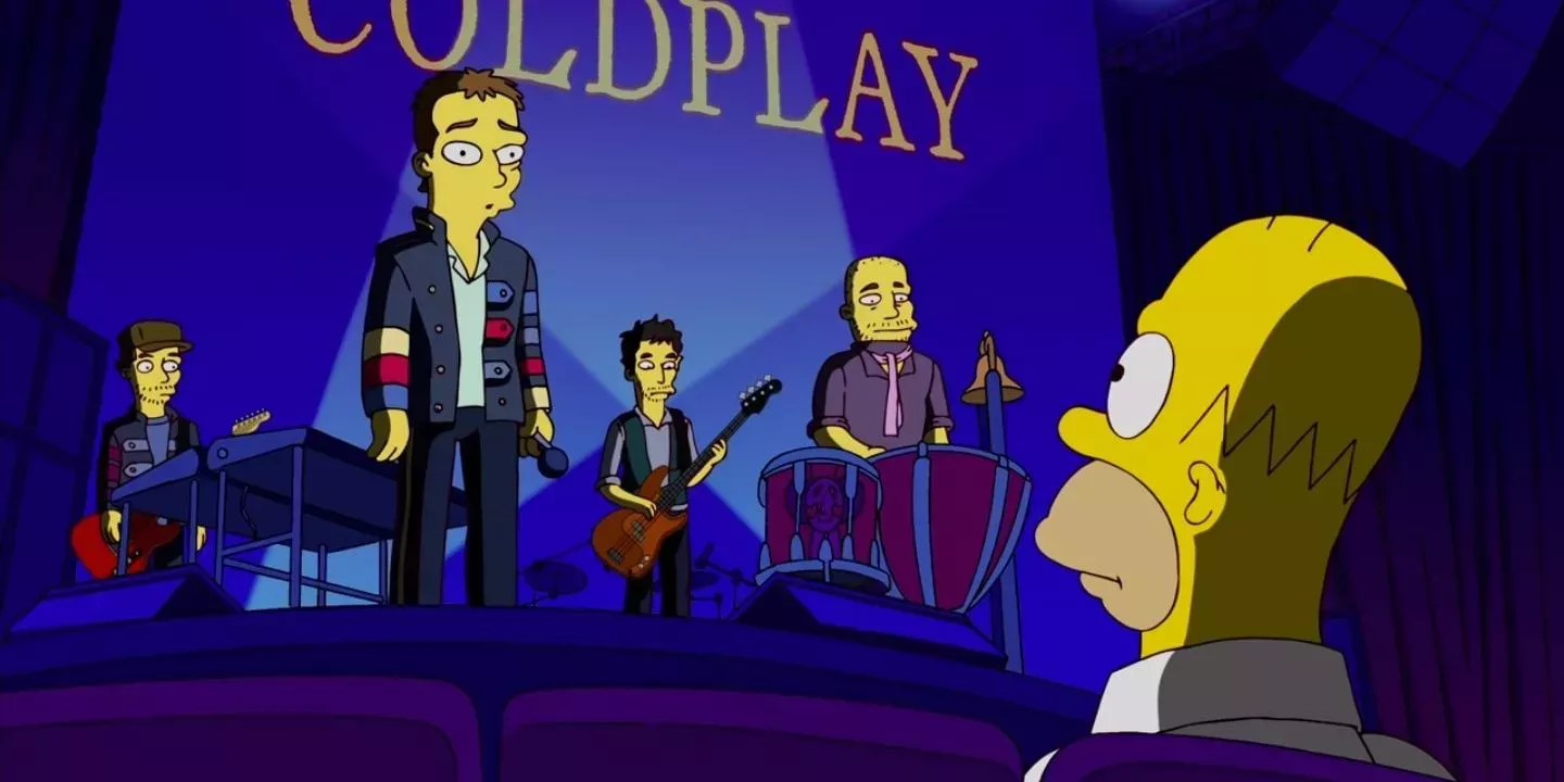 Cuando Bart se entera de las ganancias de Homer, alquilan una sala de conciertos y hacen que Coldplay actúe para ellos en privado. Hay una versión animada del grupo en el escenario, pero sólo Chris Martin interactúa verbalmente con Homer y Bart. Después de que Bart interrumpa la actuación para ir al baño, Homer vuelve a interrumpir el espectáculo para interrogar a Martin.