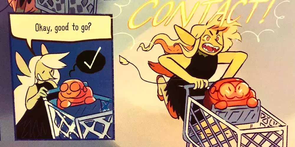 A la niña duende titular de Beetle & the Hollowbones , de Aliza Layne, le gusta saltarse sus deberes de magia para pasar el rato en el centro comercial encantado local con su amigo Blob Ghost. Cuando su otra amiga, Kat, regresa a la ciudad para ser aprendiz de magia, Beetle se siente avergonzada e inadecuada al lado de la otra chica, a la que ve mucho más genial y hábil que ella. Kat, sin embargo, tiene sus propios problemas personales con los que lidiar.