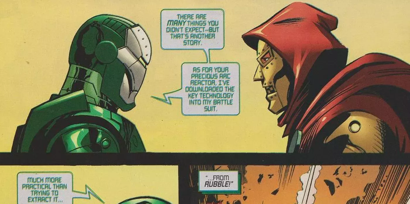 Doom crea armas cada vez más mortíferas en Industrias Stark, mientras que un empobrecido Tony Stark se ve obligado a construir un nuevo imperio tecnológico desde cero. Esto lleva a los dos hombres a entrar en guerra, primero en los negocios y luego en las armaduras.