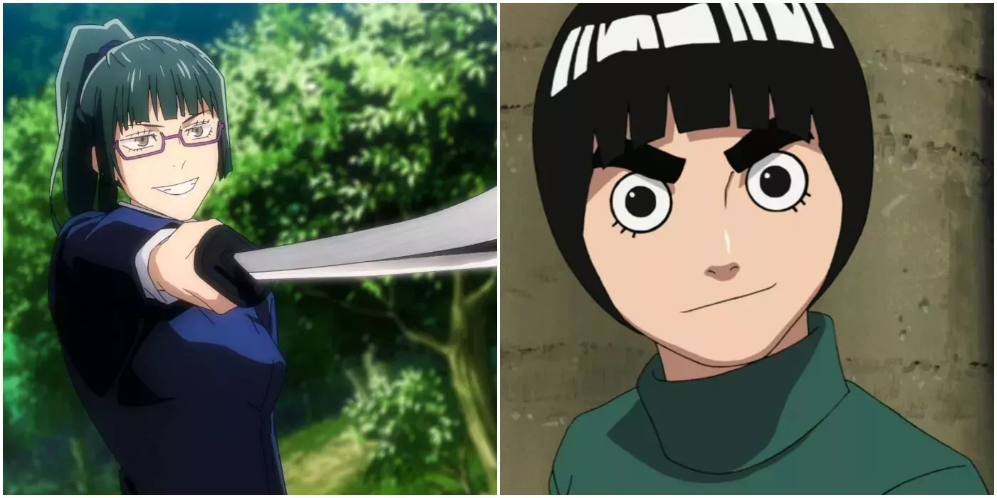 Rock Lee nació sin talento para manipular y utilizar su chakra, lo que le obligó a recurrir a dominar y confiar únicamente en el taijutsu. Por otro lado, Maki Zenin no podía utilizar la Energía Maldita ni ver los Espíritus Malditos. Para competir con su hermana, su clan y los demás hechiceros de Jujutsu, aprendió a manejar armas malditas.