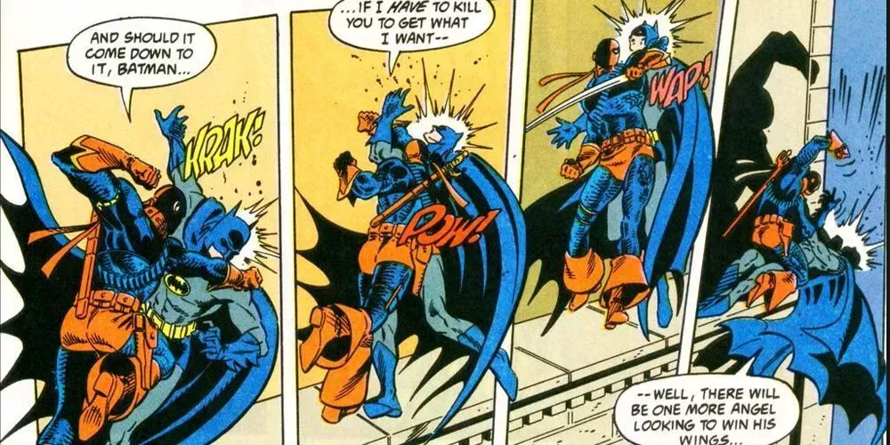 Deathstroke se jactaba de haberse entrenado para matar, mientras que Batman sólo aprendió a luchar, pero Deathstroke perdonó la vida a su oponente. Deathstroke alegó que lo hizo porque tenía otras prioridades, cuando en realidad no era más que un artificio argumental. Esta sería la primera de muchas veces en que Batman debería haber sido asesinado por Deathstroke, sólo para ser mantenido con vida.