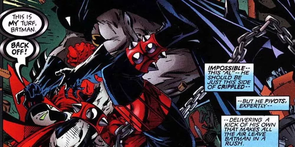 Una de las razones por las que Spawn/Batman (escrito por Frank Miller, ilustrado por Todd McFarlane) tuvo tan mala acogida fue lo transparente que resultaba su inclinación por Batman. Spawn era un Hellspawn: un demonio no muerto y superdotado que servía al señor demoníaco Malebolgia. A pesar de ello, Batman derrotó y humilló fácilmente a Spawn.