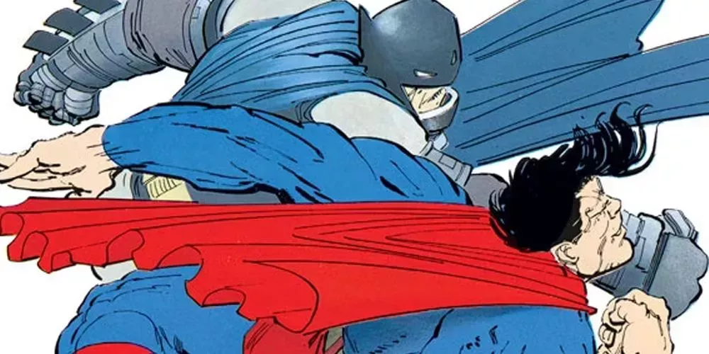 La pelea más influyente e infame de Batman y Superman tuvo lugar en The Dark Knight Returns, de Frank Miller . El lógico Batman abrumando al bruto Superman con tácticas definió todas sus peleas. Batman sólo ganó porque se escribió que Superman era un tonto crédulo, que se reveló retroactivamente que se estaba conteniendo. Siendo realistas, Superman habría aniquilado a Batman de un puñetazo.