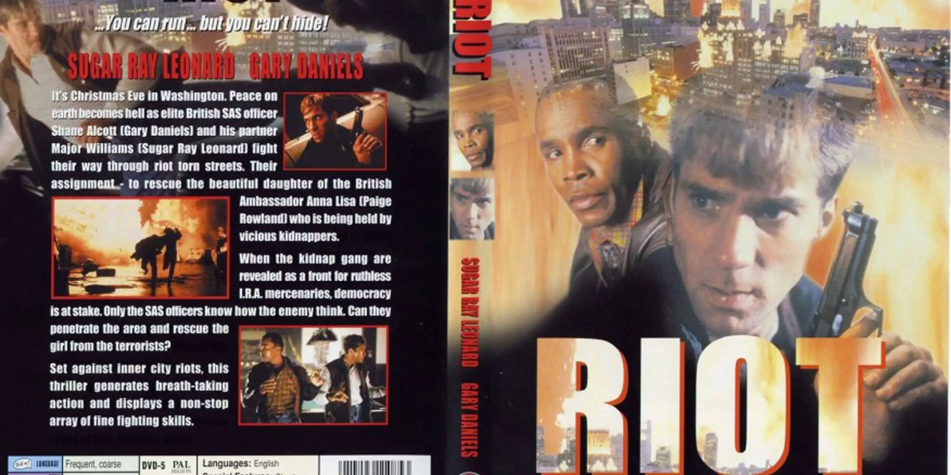 Durante el apogeo de la moda de las artes marciales en el cine de acción, la estrella de acción inglesa Gary Daniels demostró sus habilidades como artista marcial en la película Riot (Disturbios), de 1996. Daniels interpreta a un comando retirado del SAS que es llamado a servir por última vez para rescatar a la hija del embajador británico, atrapada en Los Ángeles durante un motín masivo en Nochebuena.