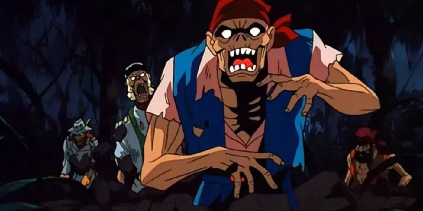 Scooby-Doo en la Isla Zombi llevó a la pandilla al corazón de una película de terror zombi, repleta de criaturas felinas ancestrales y fantasmas piratas. Para ser una película de animación infantil, la noche de terror de la pandilla es increíblemente espeluznante, y establece un nuevo tono para toda la franquicia en adelante, estimulando un nuevo apogeo para Scooby.