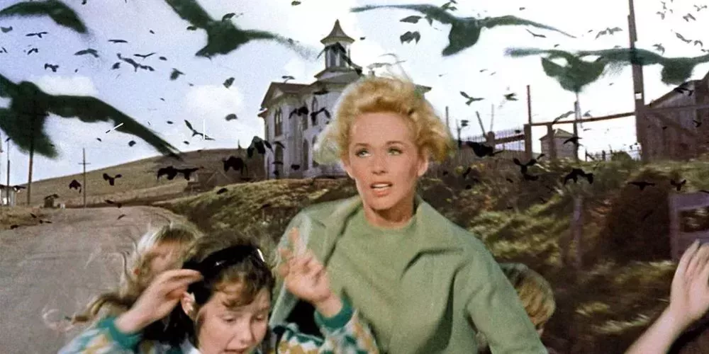 Los pájaros, basada en un relato corto de Daphne du Maurier, es una película de terror de los años sesenta dirigida por Alfred Hitchcock. La historia comienza con dos personas que inician un romance después de que la mujer regale dos pájaros del amor. Más tarde, los pájaros inician un misterioso asalto a la ciudad.