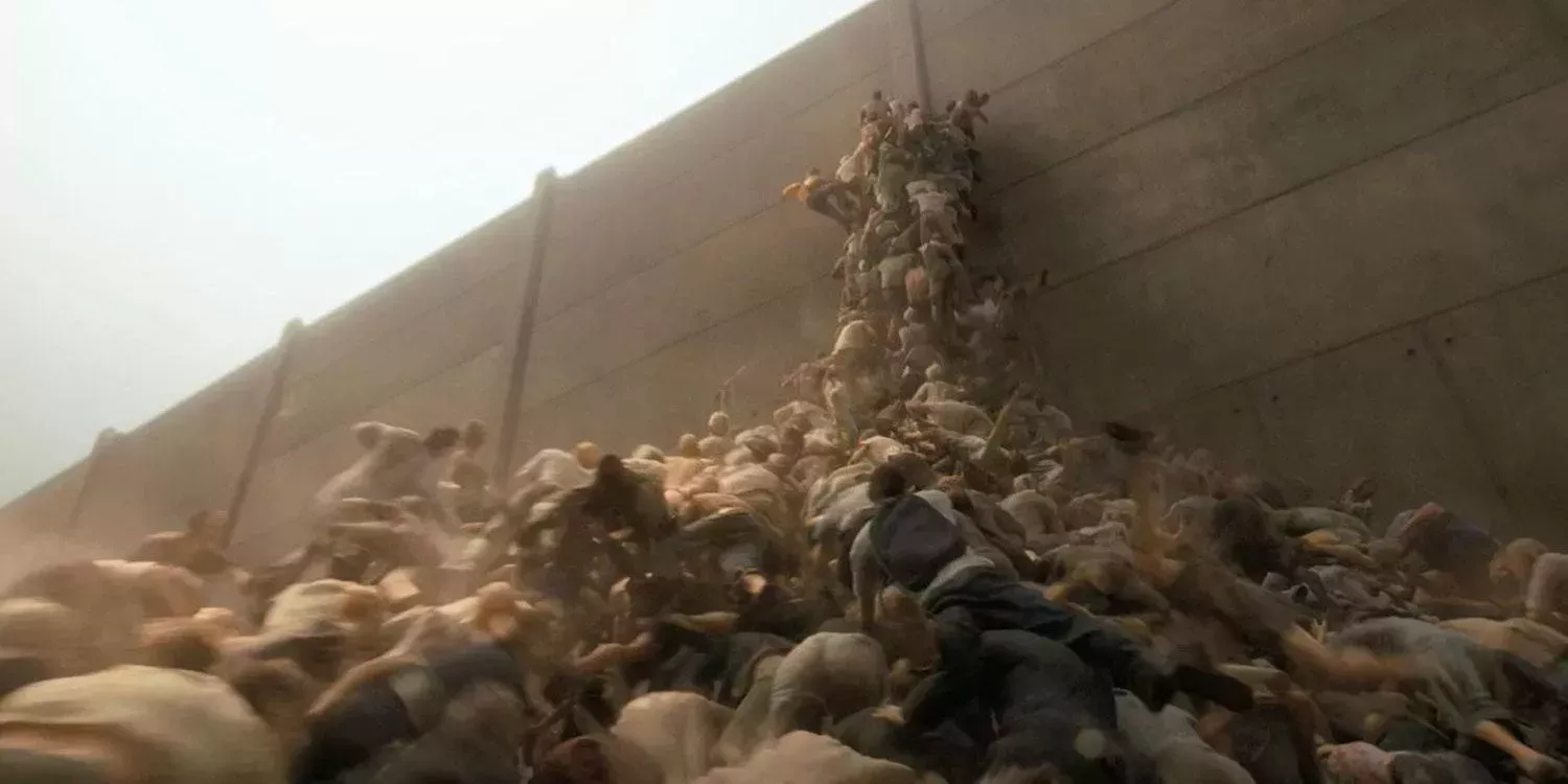 La horda de muertos vivientes de Guerra Mundial Z es una de las representaciones de muertos vivientes que más miedo ha dado en los últimos años. En lugar de ser un grupo de criaturas chamuscadas y en descomposición, los zombis de Guerra Mundial Z son monstruos rápidos y resistentes. La escena en la que la horda se pisotea sin cesar para superar un enorme muro es una imagen extremadamente impactante.