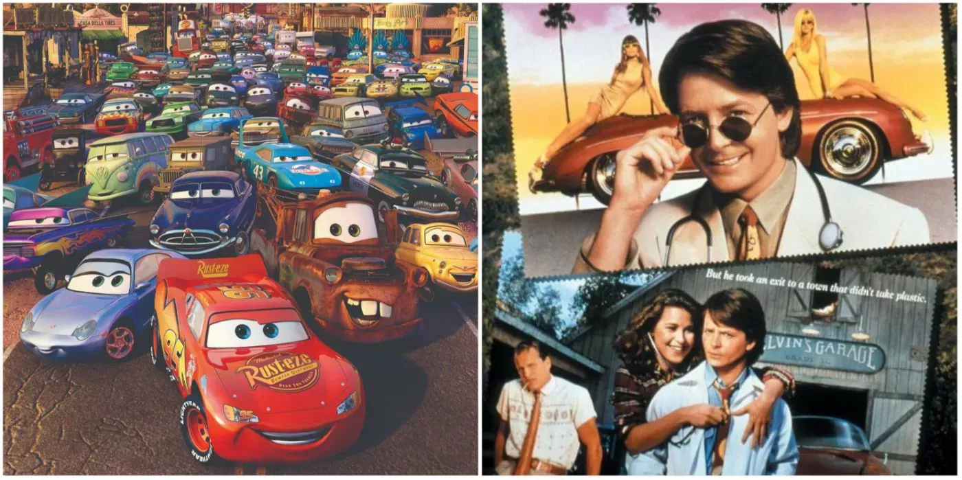 Un punto común interesante entre laspelículas de Cars de Pixares que todas toman notas de películas anteriores. Por ejemplo, Cars 2 es un homenaje a las aventuras campestres de James Bond, mientras que Cars 3 es una mezcla de películas deportivas, especialmente de la serie Rocky . Aunque las secuelas son collages, la original Cars es un clon de Doc Hollywood casi escena por escena.