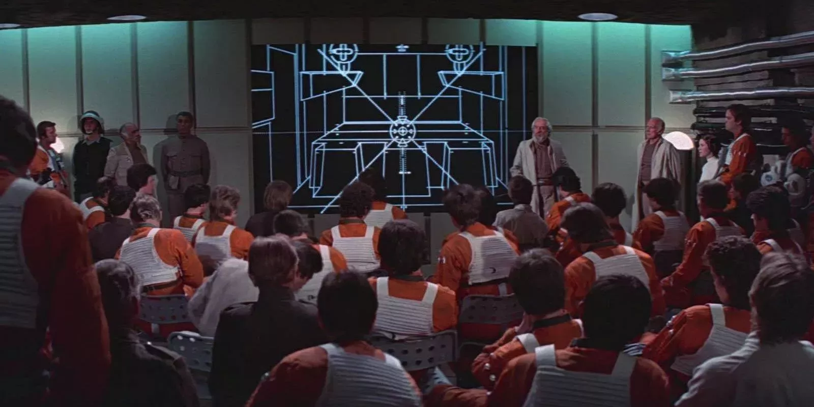 Un momento importante para el futuro de los efectos especiales fue el uso por parte de ILM de gráficos en 3D para la escena en la que Luke Skywalker y los demás pilotos de los X-Wing reciben información sobre la trinchera en la que está prevista la Estrella de la Muerte. Aunque se habían utilizado gráficos 2D en las películas anteriores, era la primera vez que se hacían en 3D.