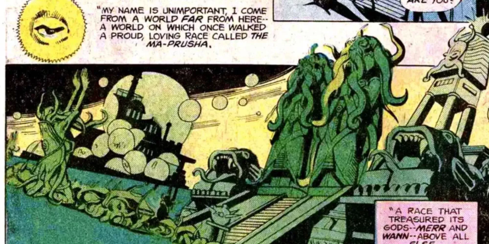En un número de The Brave and the Bold, Batman y Hawkman se vieron envueltos en un aterrador misterio lovecraftiano. Tras la entrega de unas nuevas y extrañas estatuas, los dos héroes vislumbraron un mundo a eones de distancia de la Tierra y a los extraños seres que lo habitaban.