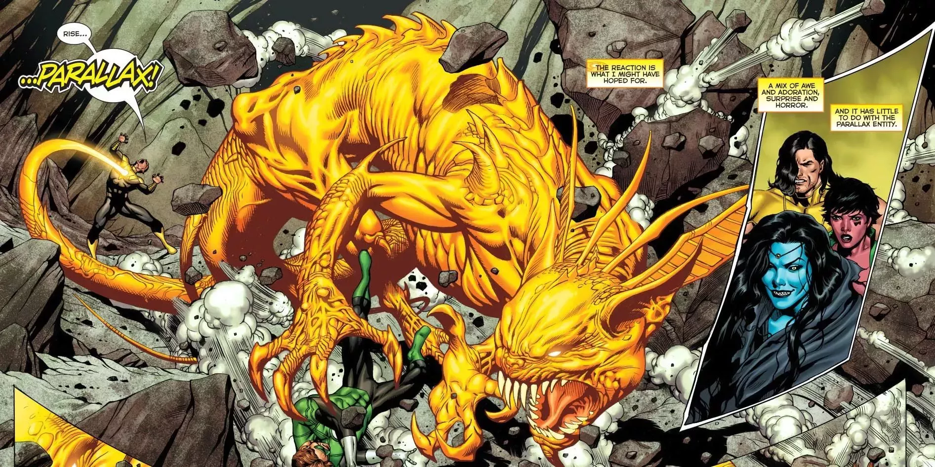 Parallax, a plena potencia, puede igualar a los Green Lantern Corps, y su energÃa amarilla del miedo es un contador directo de los corps. Tan temible era Parallax que los Guardianes de Oa tuvieron que encerrarlo en confines desconocidos del universo para salvaguardar la vida de su poder.