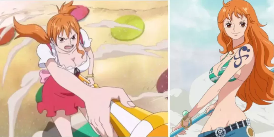 El diseño del personaje de Nami está excesivamente sexualizado. Después del salto temporal, vuelve al equipo con un pecho mucho más grande y una cintura más delgada. Sus proporciones fÃsicamente imposibles pueden crear expectativas perjudiciales para los espectadores de todos los géneros y edades, sobre todo porque One Piece es una serie dirigida a preadolescentes y adolescentes.