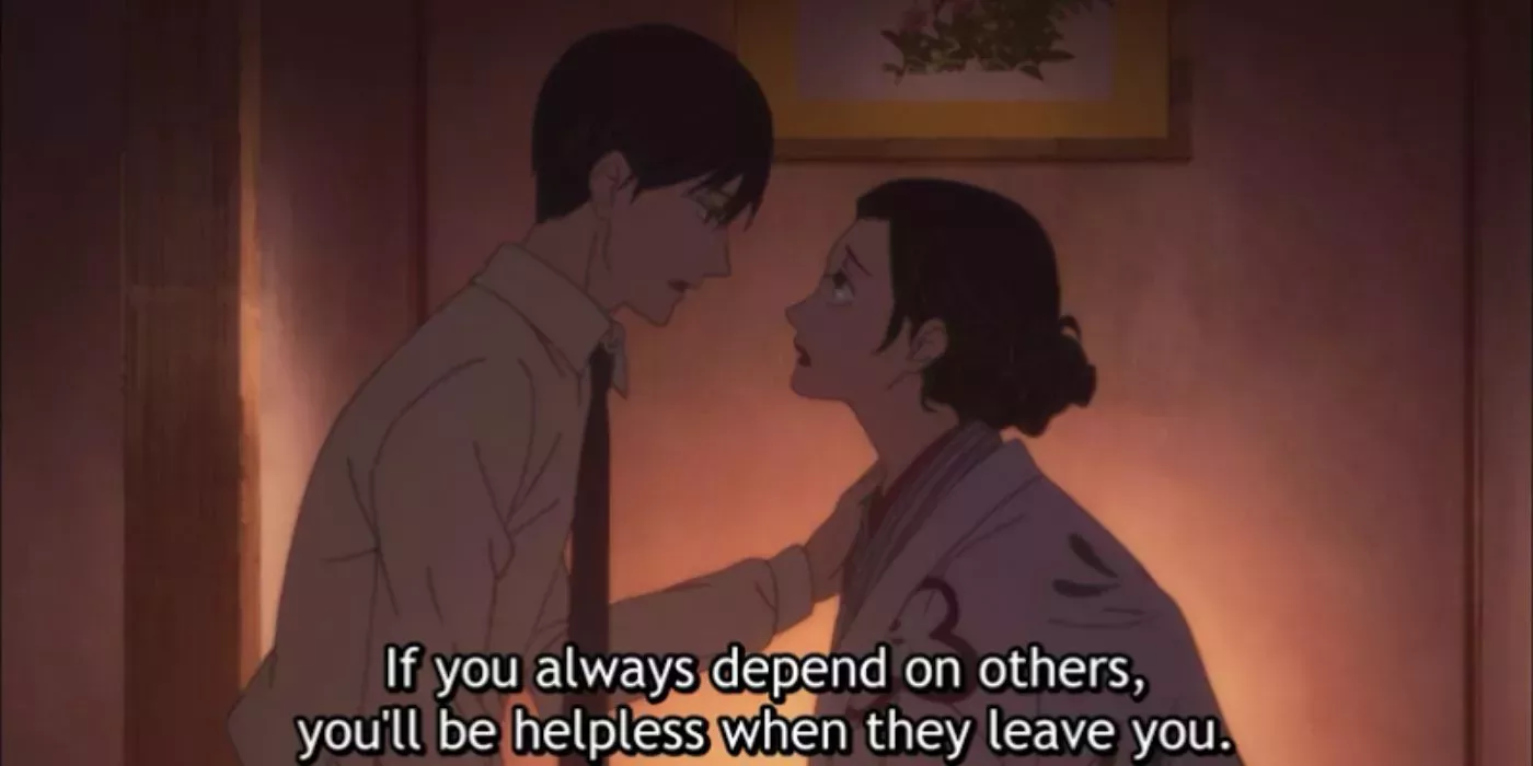 8 Kikuhiko rompe con Miyokichi para mantener las apariencias (Showa Genroku Rakugo Shinjuu)