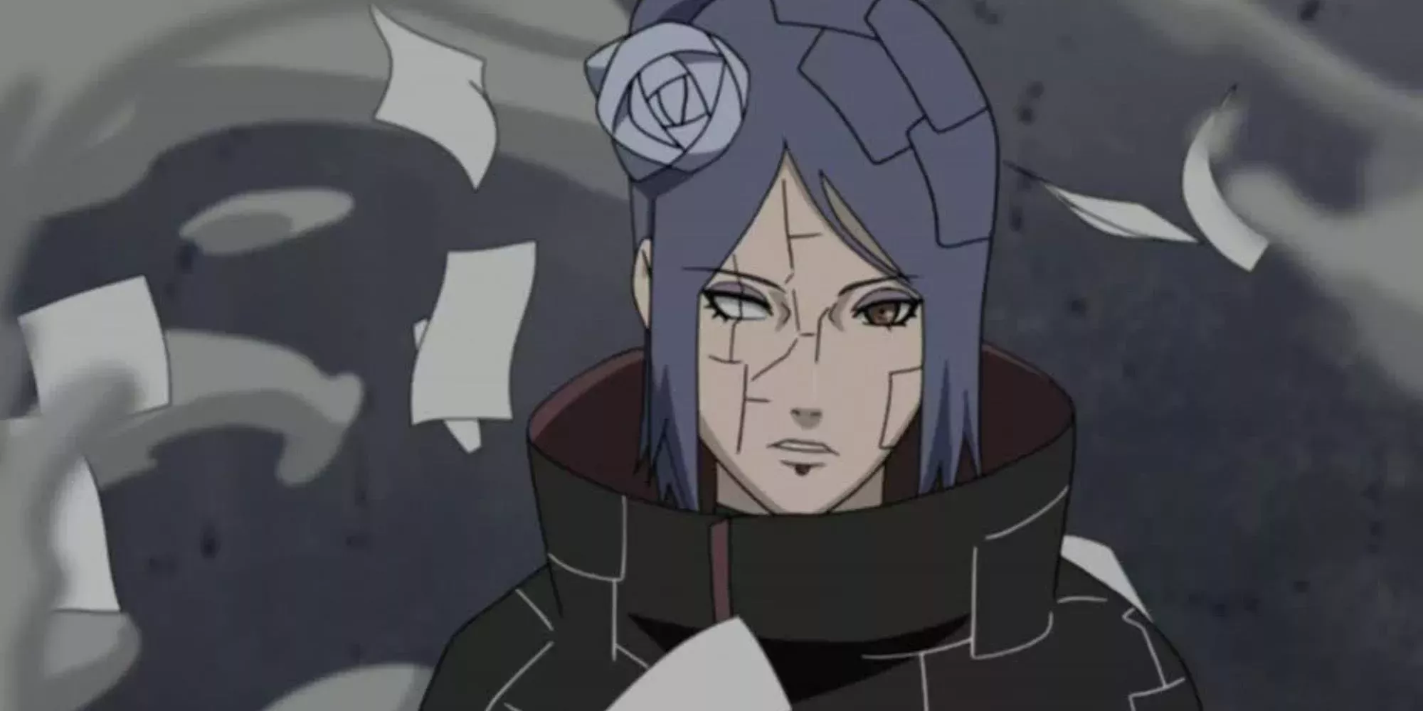 Konan era el único miembro femenino de los Akatsuki y, gracias al entrenamiento de Jiraiya, pudo convertirse en una ninja hábil y peligrosa. Su aldea fue diezmada por la guerra, y ella vio cómo el hombre al que amaba se sacrificaba para salvarla.