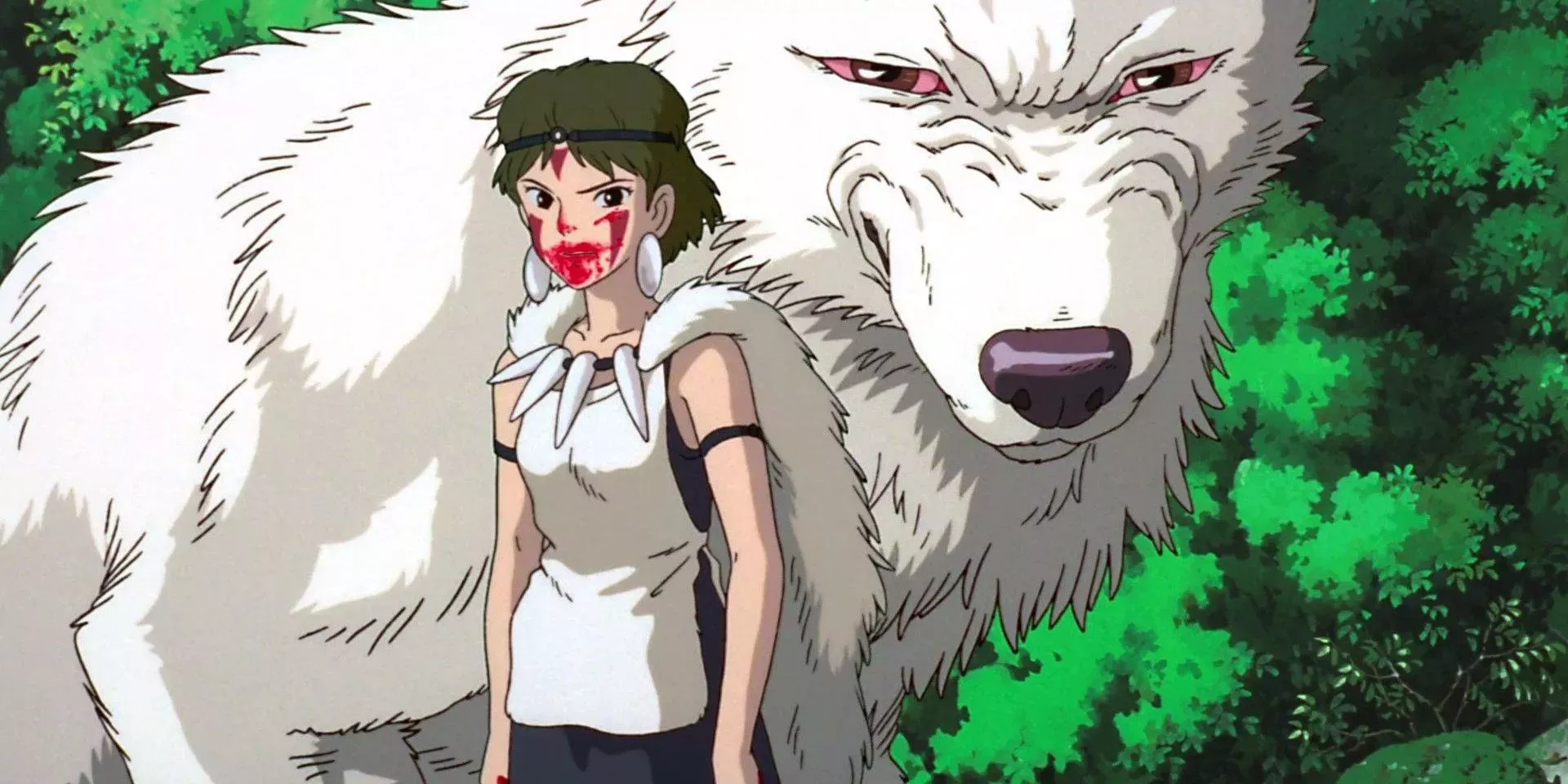 San, de la Princesa Mononoke, vive en los antiguos bosques de las afueras de Irontown. El bosque que ella y su familia de dioses lobo vigilan existía allí mucho antes de la ciudad industrial, que ahora supone una amenaza para su modo de vida.