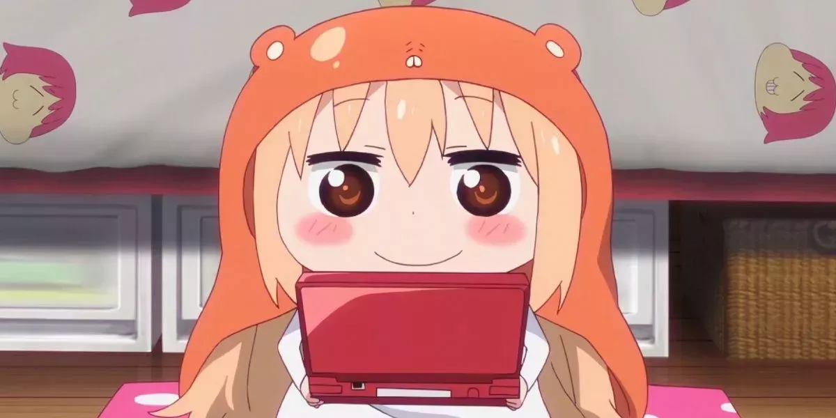Himouto! Umaru-chan está protagonizada por la protagonista, Umaru Doma, con su capucha de hámster. Puede parecer una estudiante talentosa y popular que no puede hacer nada malo cuando está en la escuela, pero cuando está en casa su verdadero yo es una otaku perezosa y malcriada que pasa todo su tiempo libre en casa, jugando, leyendo manga, viendo anime y atiborrándose de comida basura.