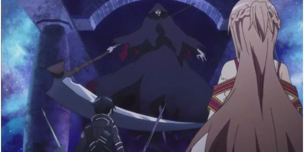 Kirito y Asuna escapan de un sorprendente encuentro con la Guadaña Fatal después de que Yui utilice sus habilidades de IA para defenderlos. Kirito y Asuna se enfrentan a un jefe plausiblemente letal sin conocer la identidad de Yui ni su capacidad para interferir. La presencia de Yui evita que Kirito y Asuna reciban más daño crítico y continúen el combate en desventaja.