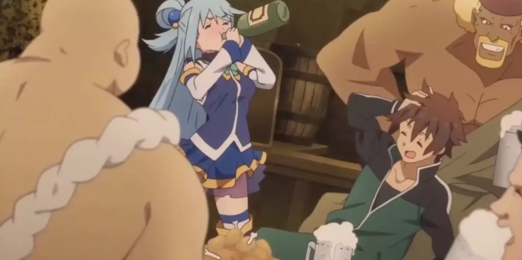 6 Konosuba: La adicción al alcohol de Aqua es más que mala para su salud