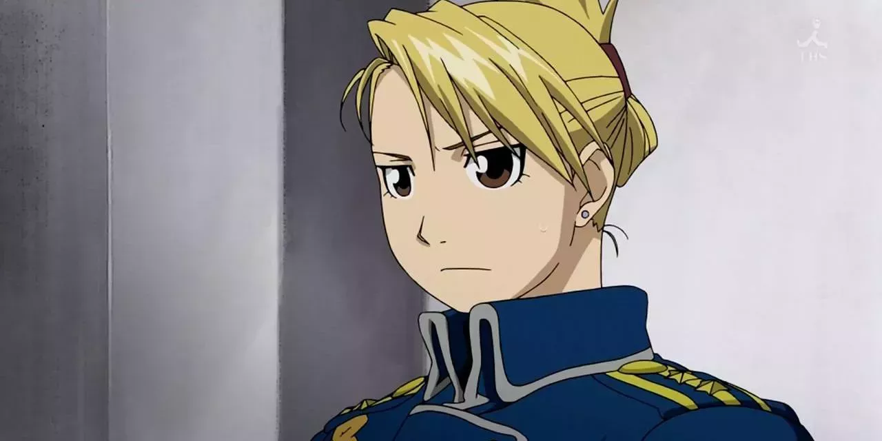Riza Hawkeye es teniente del ejército de Amestris y la mano derecha de Roy Mustang. Fue su padre quien le dio a Mustang la receta de la Alquimia de la Llama, y desde entonces Mustang y ella han estado muy unidos. Hawkeye es conocida por ser una francotiradora y mantiene su talento a lo largo de Fullmetal Alchemist: Brotherhood. También es excepcionalmente astuta y ayuda a Mustang (y a otros) a salir de más de un apuro.
